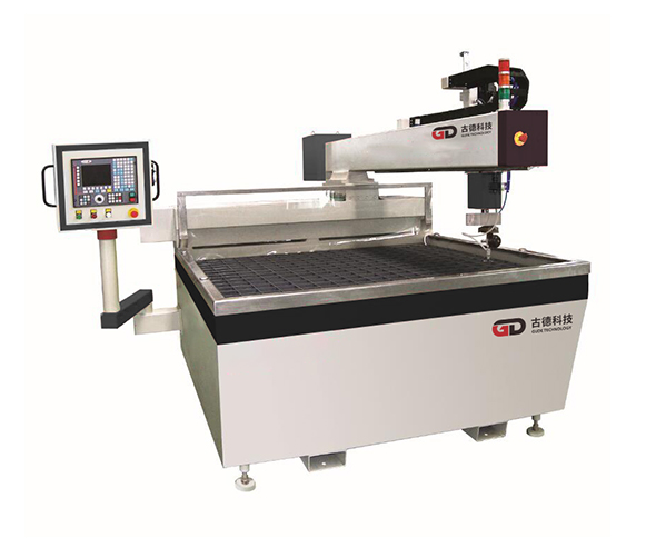 四軸水切割機是古德率先開發(fā)的新一代用于陶瓷石材拼花等領域的新型切割機。X4-Ⅲ四軸水切割機采用“可調(diào)式斜邊切割控制機構(gòu)”等發(fā)明專利技術(專利號:ZL 201110245675.9),在普通水切割機的基礎上增加了斜邊控制機構(gòu)和四軸控制系統(tǒng),通過調(diào)整偏擺軸的偏擺角度,并配合回轉(zhuǎn)軸的轉(zhuǎn)動來控制切割頭的姿態(tài),使得石材陶瓷切割獲得反方向的切口斜邊,拼接時省去了人工打磨這一勞動強度最大、花費時間最長、粉塵和噪音污染最為嚴重的環(huán)節(jié)。四軸水刀不僅大大提升了石材陶瓷拼圖的品質(zhì),而且極古德提高了生產(chǎn)效率,降低了生產(chǎn)成本,是石材陶瓷拼花行業(yè)的一項革命。